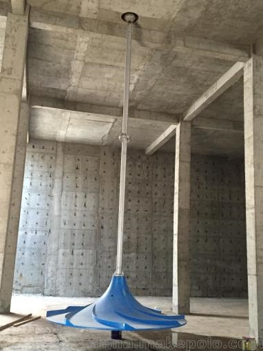 5、将伞型叶轮与搅拌轴联接好,稳妥的放入池中。注意不要碰撞池壁和桥架等物体。然后将搅拌轴与主机进行联接。注意:在以上操作过程完毕之前,应始终保持起吊设备处于吃重状态,以保重证按装人员的人身安全和设备安全。